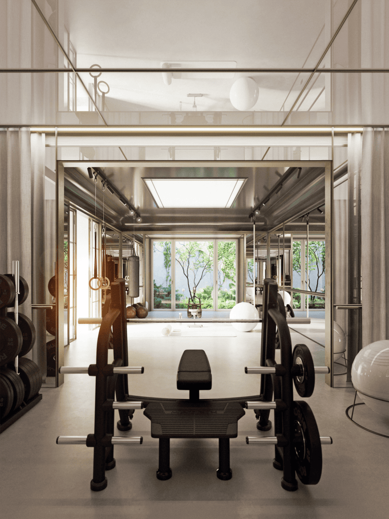 Specials wie der charmante Hofgarten und die zum Gym umgebaute alte Remise ergänzen das zeitlos elegante Bauwerk als Alleinstellungsmerkmale. Ein besonderes Highlight zum Entspannen vor und nach jedem Training ist der intime begrünte Open-Air-Lichthof mit einem Belag aus Naturstein.