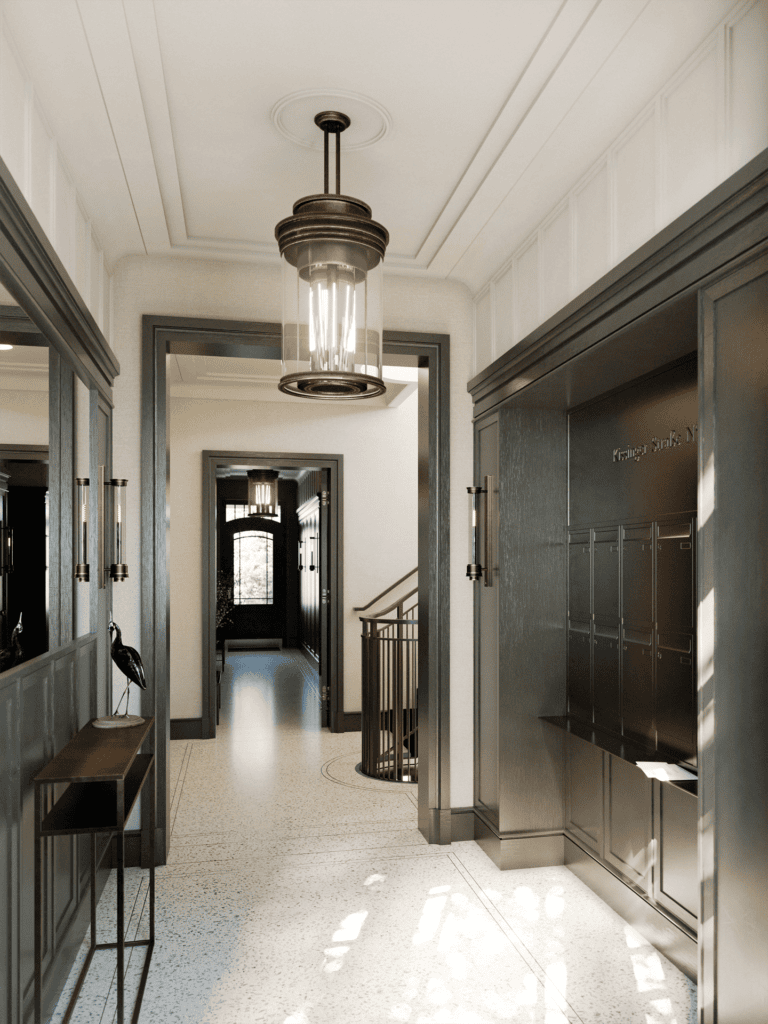 Um dieses Volumen harmonisch zu gliedern, haben wir drei separate Eingänge mit eigenen Hausnummern und repräsentativen Foyers geschaffen.