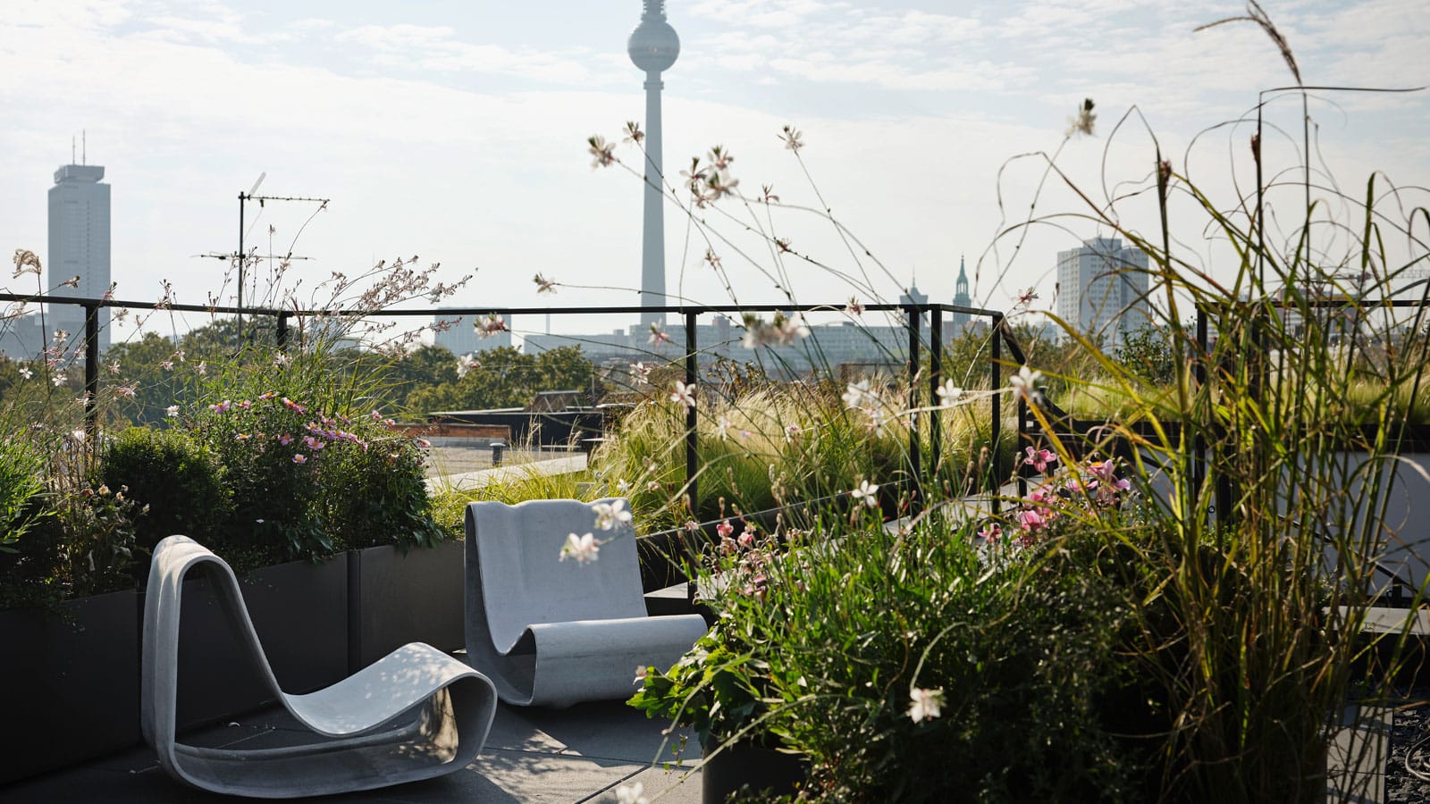 Himmel über Berlin: Der luftige Balkon und die nahezu umlaufende Dachterrasse machen das Penthouse zu einem einmaligen Ort, der absolute Urbanität mit zurückgezogener Idylle verbindet.
