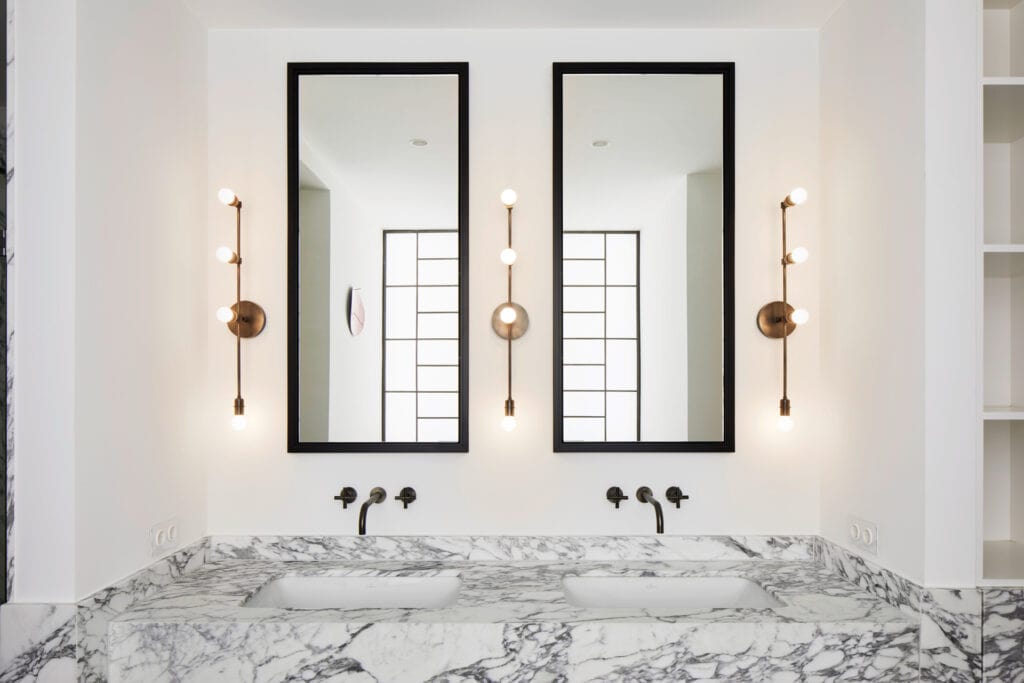 Exklusive Details wie individuell gefertigte Innentüren, edle Schalterprogramme von Berker sowie handgezogene Stuckprofile prägen die Ausstattung. Die Böden sind aus Eichenparkett, elegantem Naturstein und Feinstein. Alle En-suite-Masterbäder und Gästebäder werden hochwertig ausgestattet: Bodengleiche Rainshower-Duschen, Doppelwaschtische und großformatige Natursteinbeläge finden sich in den Bädern wieder. Für ein angenehmes Raumklima sorgen modernste Wohnraumlüftungsanlagen mit Wärmerückgewinnung.