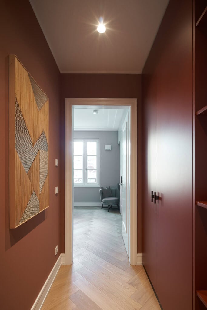 Jeder Raum erzählt eine eigene Farbgeschichte – mit fein abgestimmten Tönen aus der Kollektion von Anna von Mangoldt, darunter: „GUSTAV“ im Entrée, „SANSIBAR“ in der Garderobe, „ARCHITECTS DELIGHT“ im Bad oder „HIERONYMUS“ im Wohnbereich.