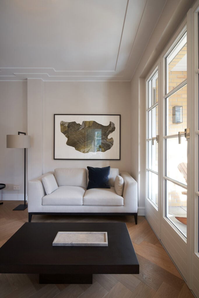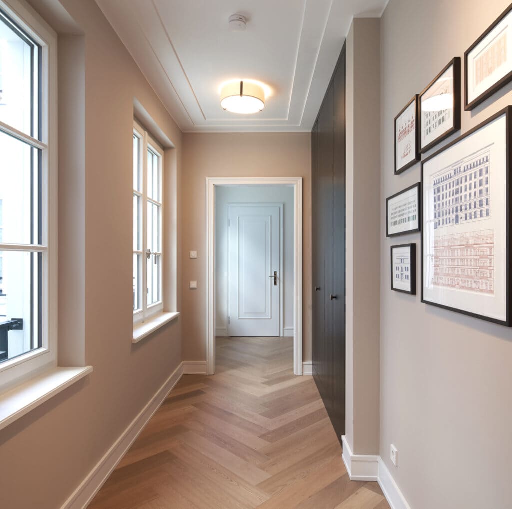- Stuckprofile und elegante Wandfarbe in den Wohnräumen
