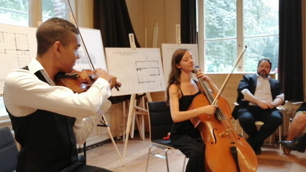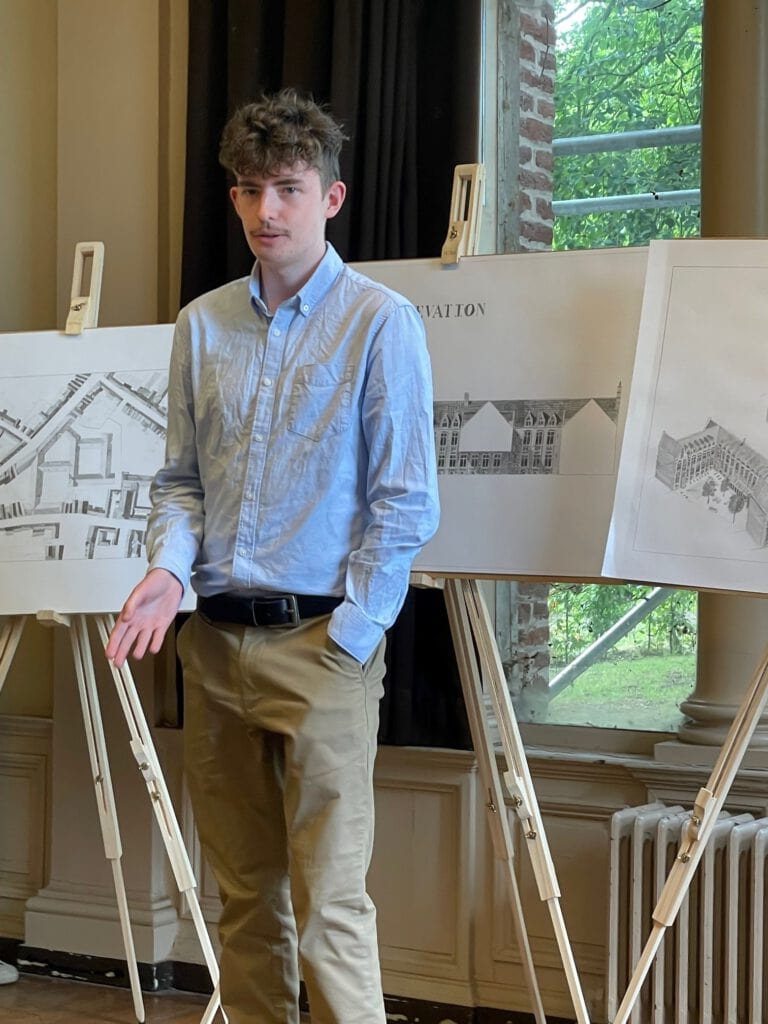Unternehmensgründer Ralf Schmitz hatte als Mitglied der Jury die erfreuliche Gelegenheit, unseren geförderten Teilnehmer Alexander Peacock, ein 18-jähriger Architektur-Student aus Irland, kennenzulernen und die Vorstellung seines Projektes zu verfolgen. Auch für Unterhaltungen mit weiteren Jurymitgliedern wie dem Schirmherrn Léon Krier blieb genügend Zeit – im Anschluss an die Präsentationen rundeten ein gemeinsamer Lunch und ein kleines klassisches Konzert die gelungene Veranstaltung ab, bevor zum Abend die Jury tagte.