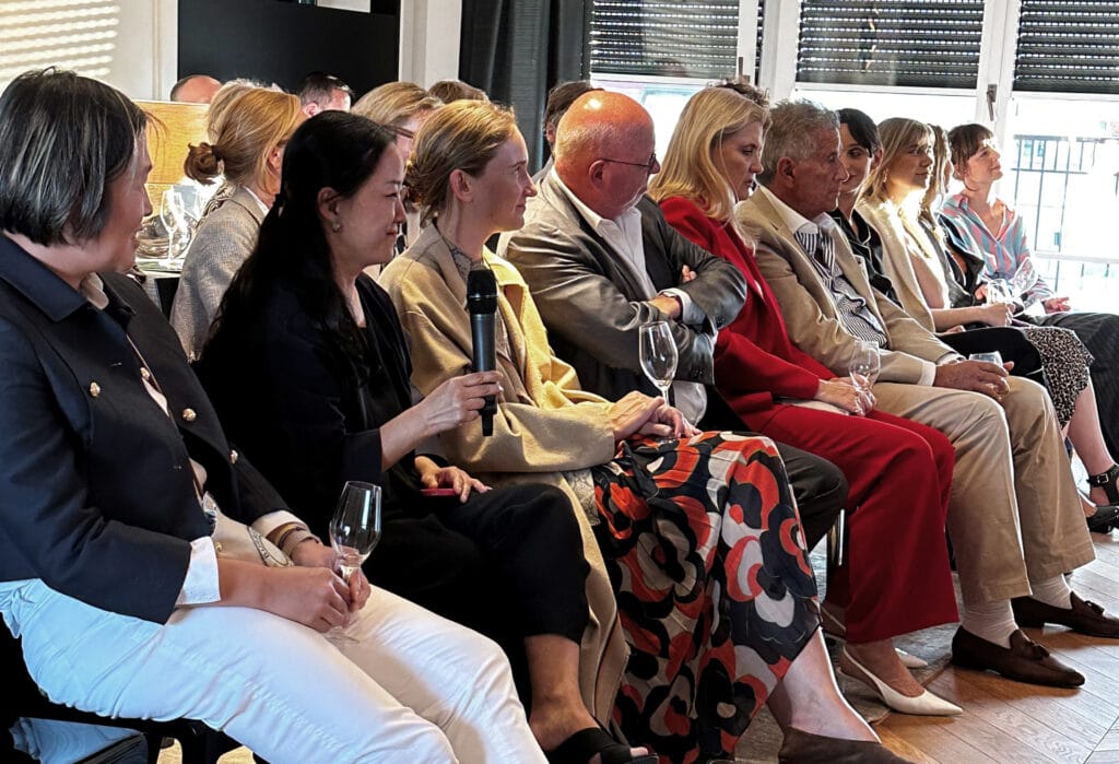 Gloria von Bronewski, Chefredakteurin des Robb Report Germany, spricht über den „leisen Luxus“. Gastredner Hubertus Butin (li.) veröffentlichte 2020 sein Buch „Kunstfälschung. Das betrügliche Objekt der Begierde“ im Suhrkamp Verlag.